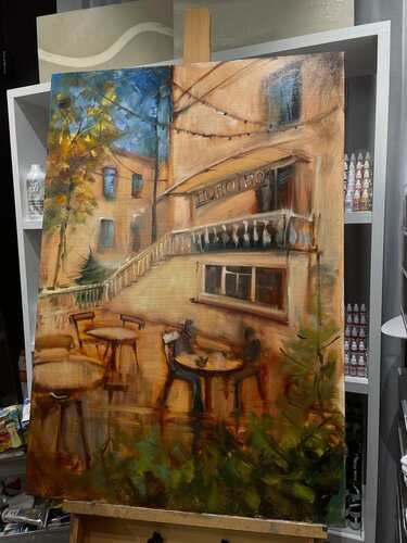 Над кофейней галерея, куда настоятельно рекомендую зайти если не за покупкой произведения в свою коллекцию или интерьер, то чтобы просто насладиться современным искусством в разных техниках)